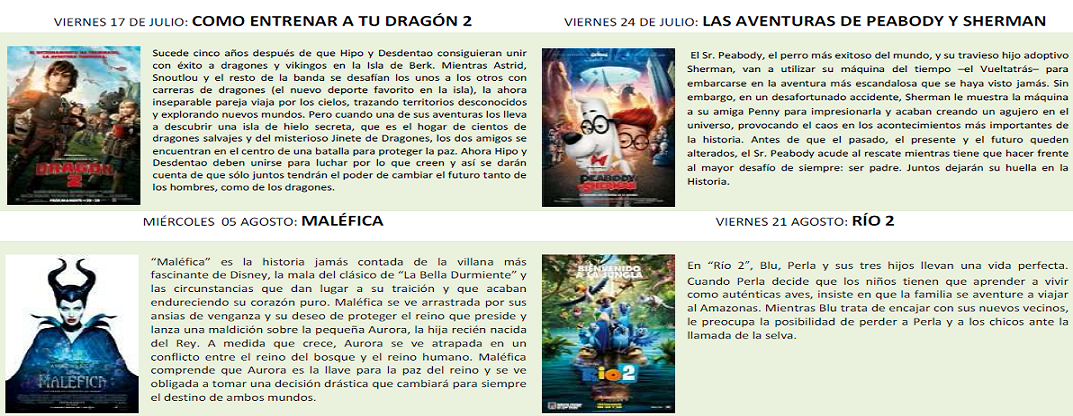 Leer más »Entre los meses de julio y agosto, se van a proyectar, en el parque Severiano Ballesteros, los filmes ‘Cómo entrenar a tu dragón 2’, ‘Las aventuras de Peabody y Sherman’,’ Maléfica’ y ‘Río 2’.
