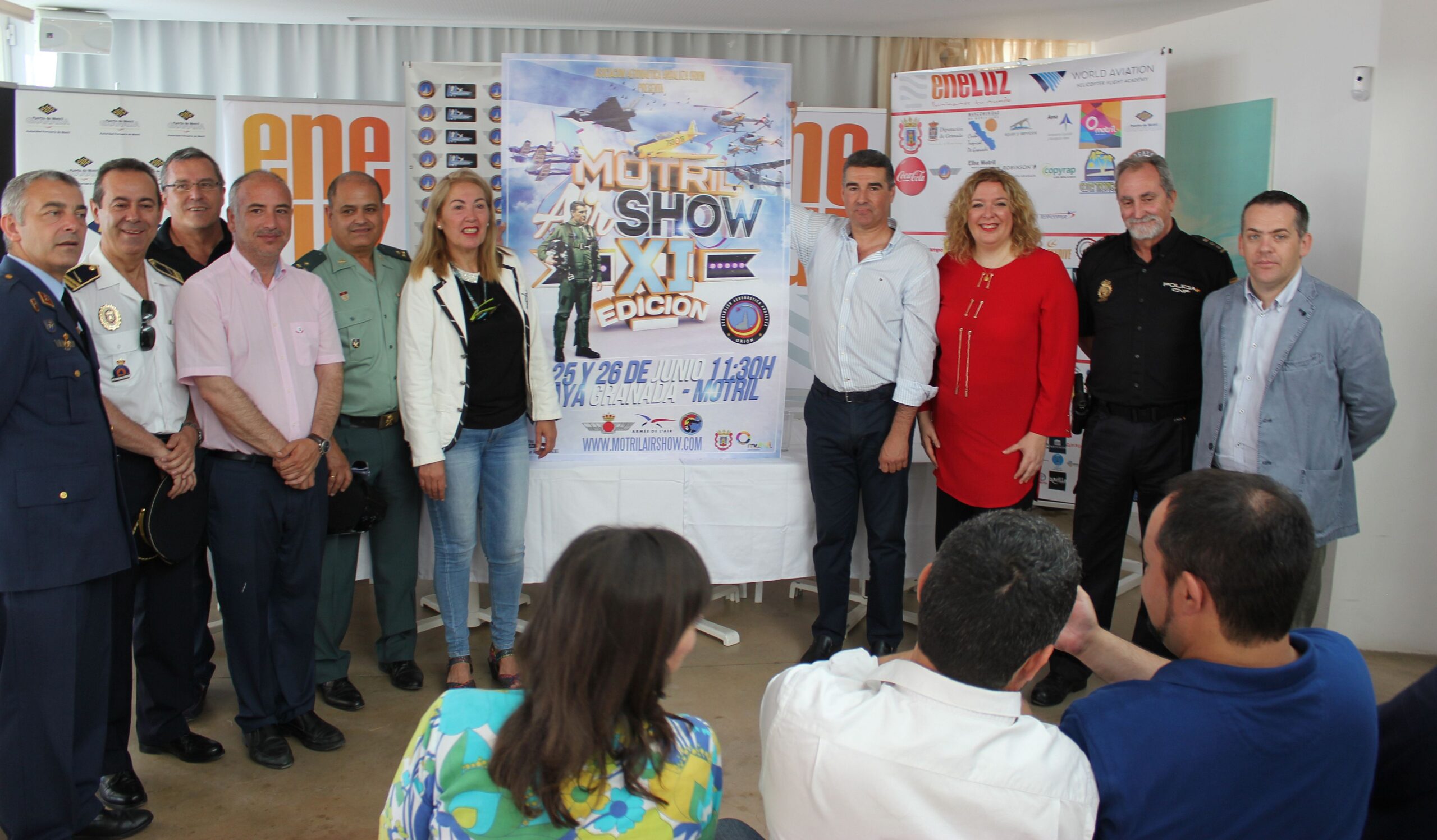 Motril volverá a ser el centro de atención de los aficionados a la aviación con la celebración, el próximo 26 de junio, del XI Festival Aéreo de Motril. La alcaldesa de la ciudad, Flor Almón, junto con la teniente de alcalde María Ángeles Escámez, el presidente de Mancomunidad, Sergio García Alabarce, Miguel Ángel Gamarra, de la Autoridad Portuaria, y el presidente de la ‘Asociación Aeronáutica Andaluza Orión’, José Miguel Pérez Juárez, han presentado el cartel de este magnífico evento, que espera reunir en las playas motrileñas a más de 50.000 personas.